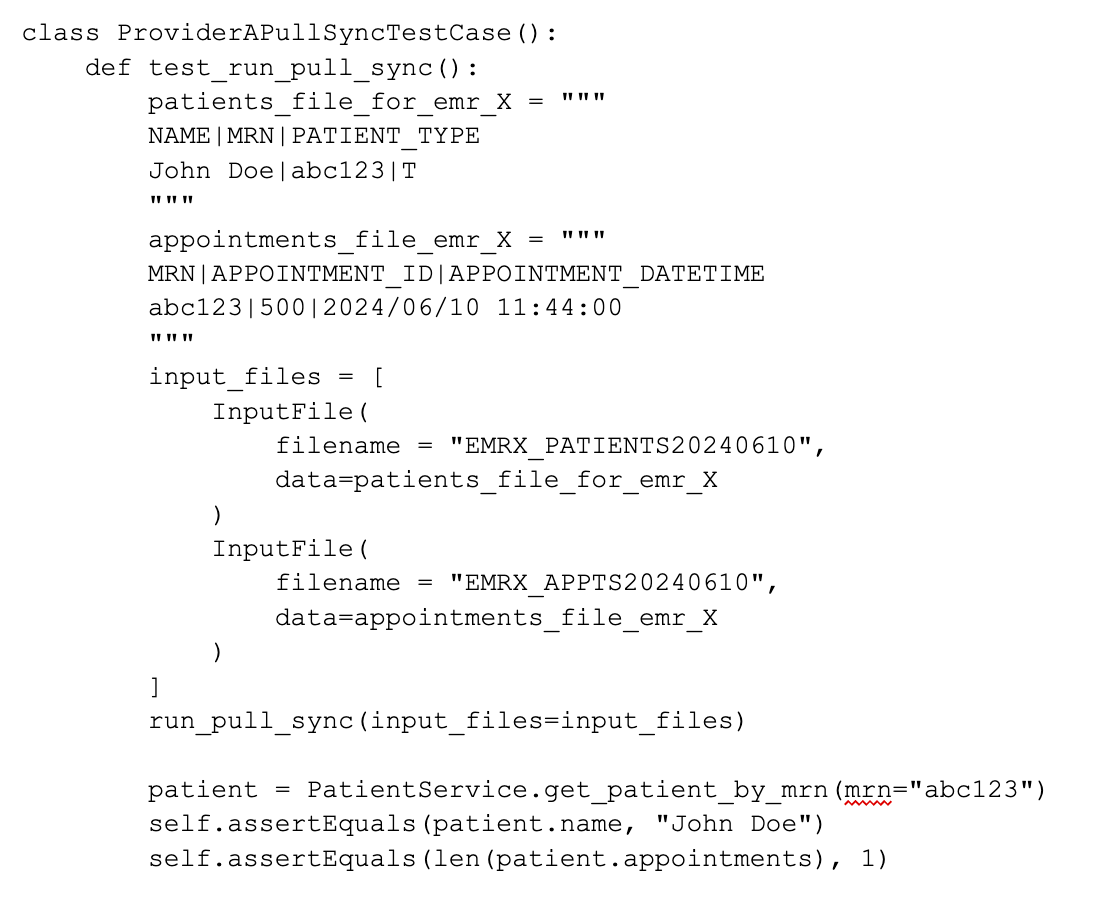 - Manually curating a data set for the sync. This is mock EMR data for a pull sync, or mock Cedar data for a push sync.